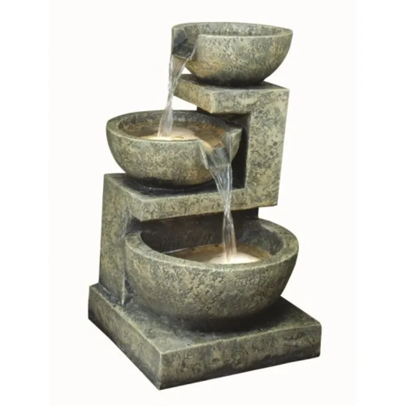 All fountains are self-contained and require minimal assembly, they come complete with a low voltage pump, transformer and fitted plug for easy installation.