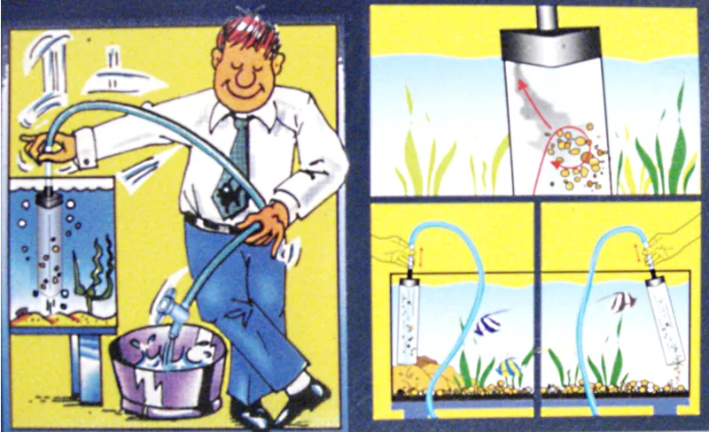 - Easy to use. Once the siphon action is started, it is possible to clean the gravel and remove any solid waste by lightly pushing the end of the large tube into the gravel. The stones can then swirl within the tube but will not be removed.