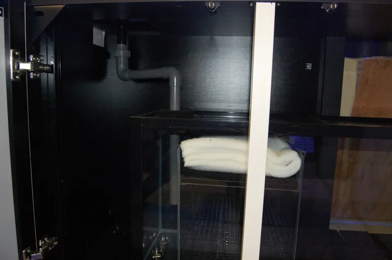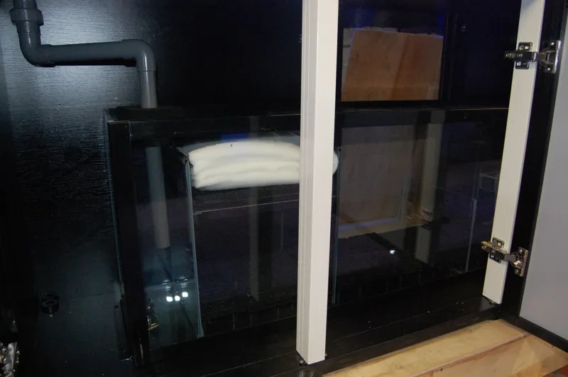 4 white push to open glass doors are fitted to the stylish yet heavy duty cabinet which matches the acrylic tank frame and providing easy access to the sump.Â