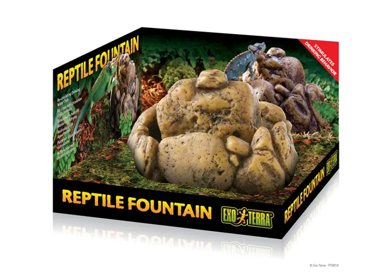 The stable and compact design make it easy to install and difficult to tip over. Â he Exo Terra Reptile Fountain is easy-to-maintain, as it consists of only two pieces that can easily be dismantled for cleaning purposes.