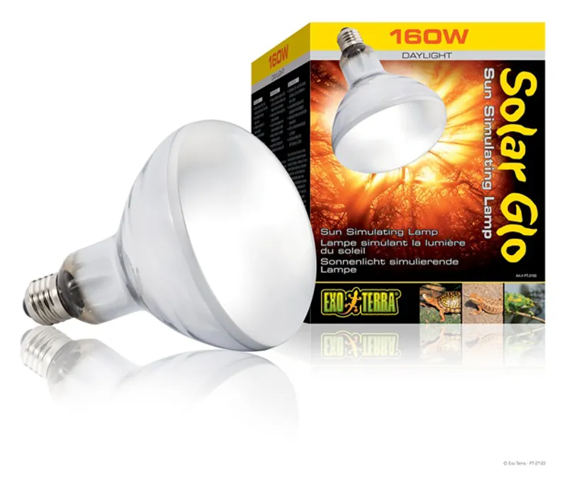 The proper balance of ultraviolet light (including UVA and UVB), visual light and infrared light (heat) in one easy-to-install bulb makes the Exo Terra Solar Glo the choice of professional breeders.