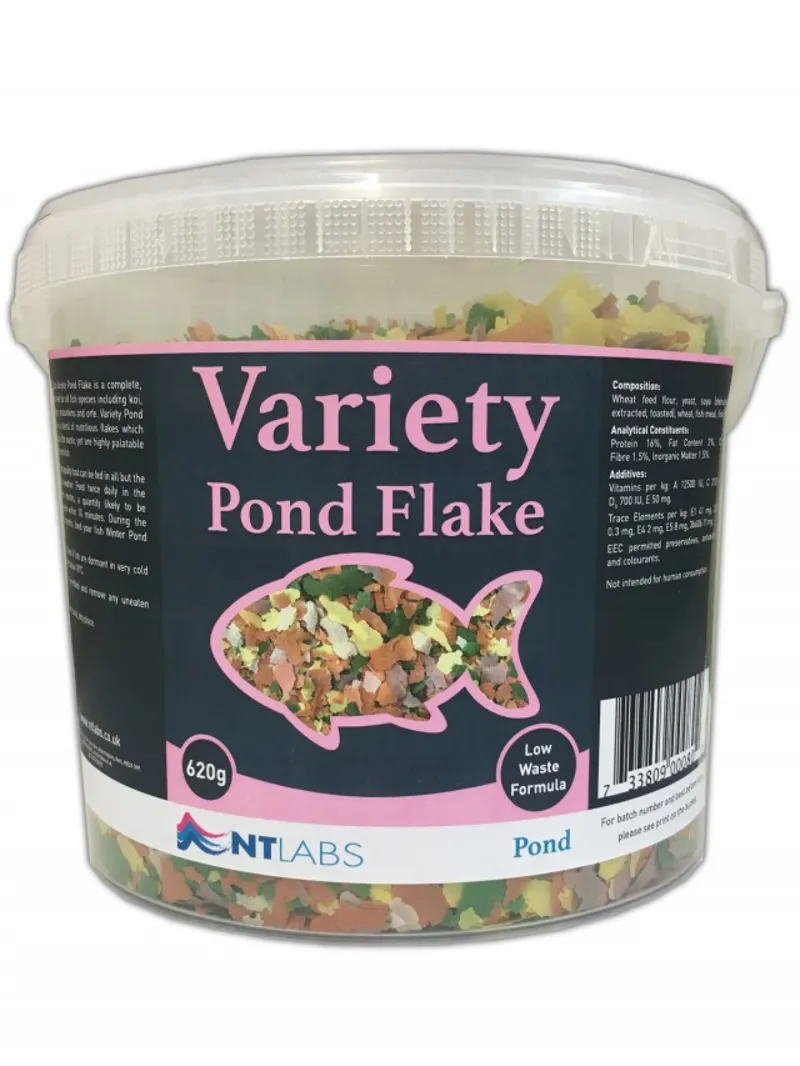 NT Labs Variety Pond Flake is a complete, flaked feed for all fish species including koi, goldfish, shubunkins and orfe. Variety Pond Flake is a blend of nutritious flakes which produce little waste, yet are highly palatable for all pond fish.