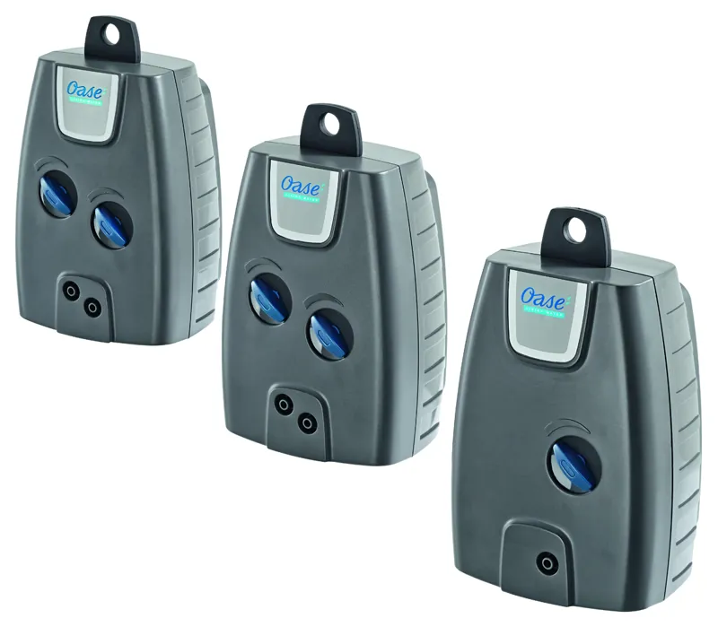 The OxyMax Air pumps are reliable and robust, the quantity of air and the bubble pattern can be easily adjusted via the integrated air diffuser. The pump can be used in an upright standing position or it can be suspended. Thanks to their design, the pumps are pleasantly quiet. All OxyMax variants are delivered as a complete set with hose and air diffuser and are ready for immediate operation!
