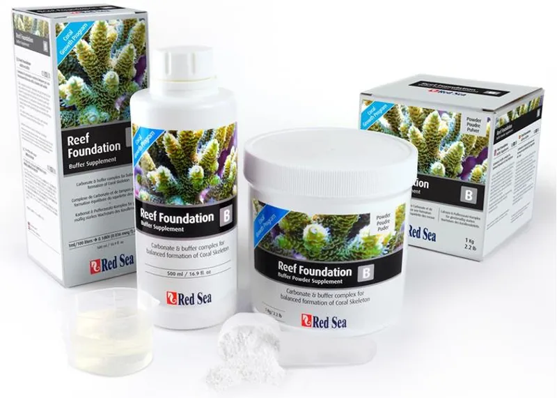 Reef Foundation B is a complex of carbonate and other buffers present in seawater that maintain proper alkalinity and pH, and is part of Red Sea’s complete Reef Care program.