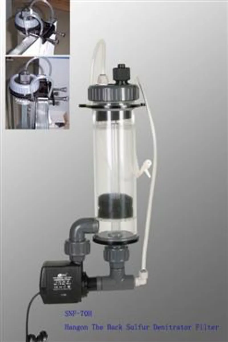 SNF-70H Sulfur Denitrator Hang On FilterConstructed using High Quality Cell Cast Acrylics,SCH-80 Hard PVC pipes and JG fittingsPump(s) Included : OTP-1000Filter type : Hang On
